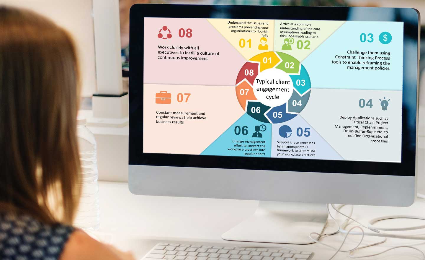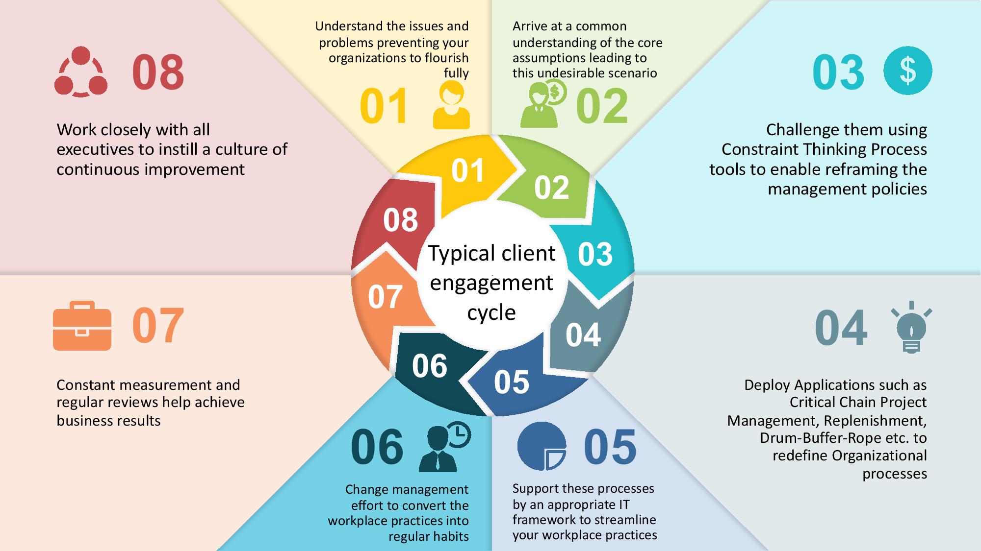 This is achieved through appropriate thinking, reframing policies, deploying suitable applications, supporting them with an ideal IT framework, practicing change management, constantly measuring and reviewing the intervention program for achieving targeted business results. bE works closely with all executives to instil a culture of continuous improvement, thus create and maintain a growth culture within our client organisation.